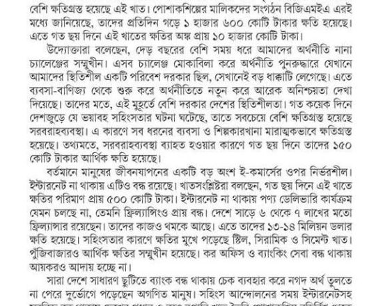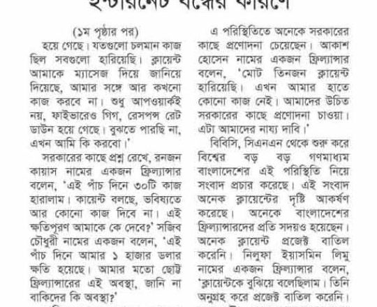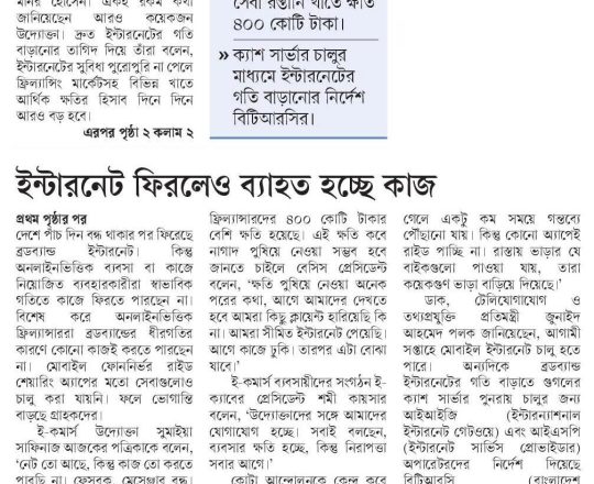 আজকের পত্রিকা, ২৬ জুলাই ২০২৪, ইন্টারনেট ফিরলেও ব্যাহত হচ্ছে কাজ