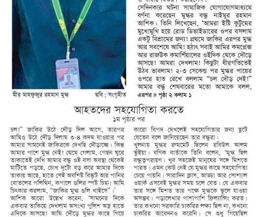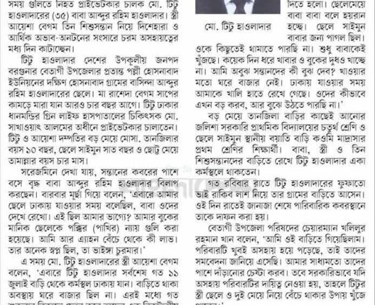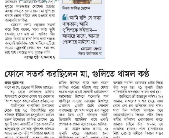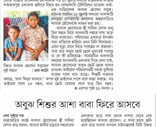 আজকের পত্রিকা, ২৬ জুলাই ২০২৪, ফোনে সতর্ক করছিলেন মা, গুলিতে থামল কণ্ঠ