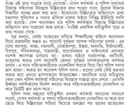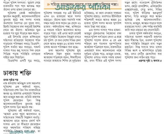 আজকের পত্রিকা, ২৬ জুলাই ২০২৪, ঢাকায় শক্তি বাড়াচ্ছে পুলিশ