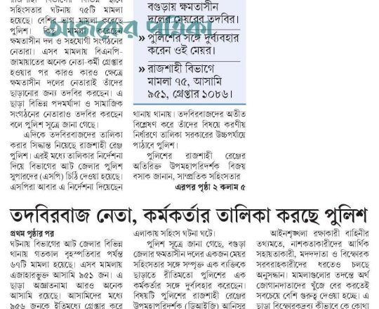 আজকের পত্রিকা, ২৬ জুলাই ২০২৪, তদবিরবাজ নেতা, কর্মকর্তার তালিকা করছে পুলিশ