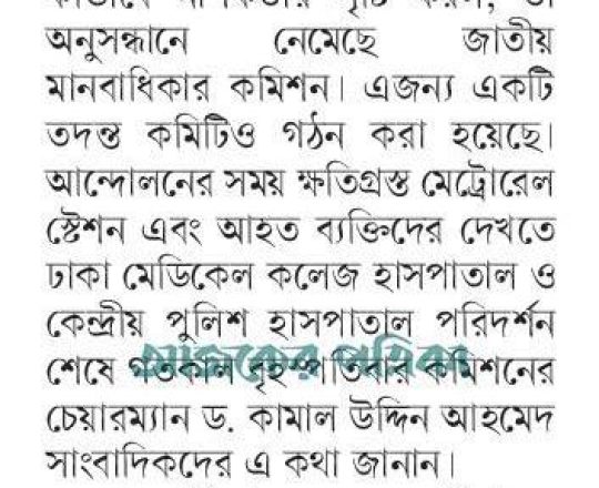 আজকের পত্রিকা, ২৬ জুলাই ২০২৪, নাশকতা অনুসন্ধানে মানবাধিকার কমিশন