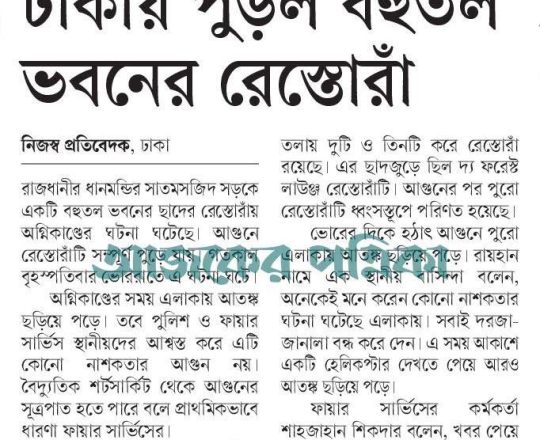 আজকের পত্রিকা, ২৬ জুলাই ২০২৪, ঢাকায় পুড়ল বহুতল ভবনের রেস্তোরাঁ