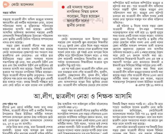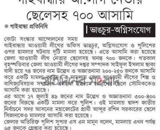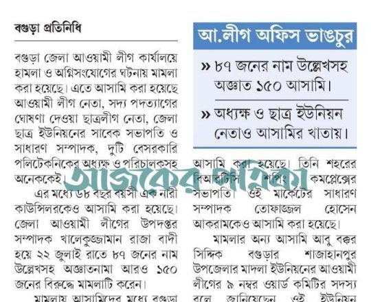 আজকের পত্রিকা, ২৬ জুলাই ২০২৪, আসামি আ.লীগ নেতারা
