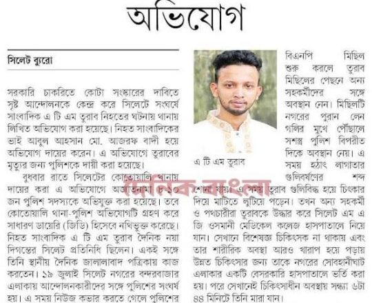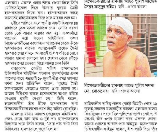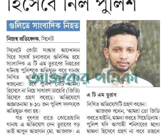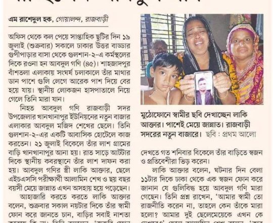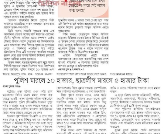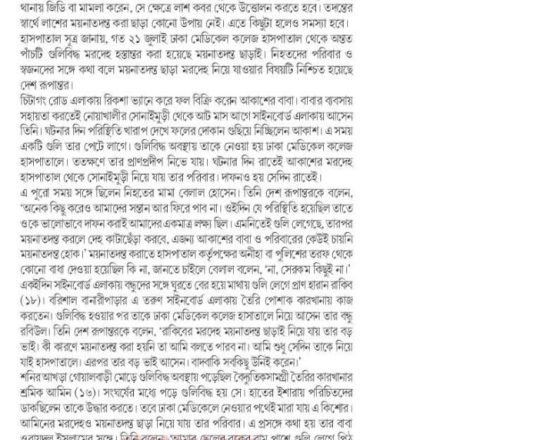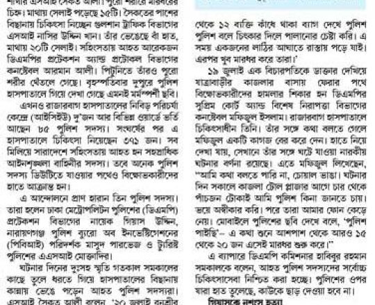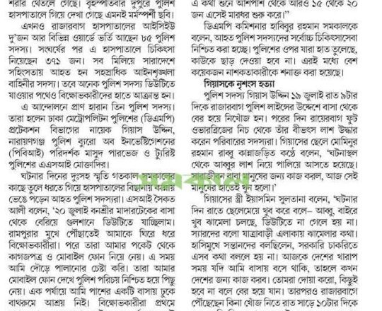 আজকের পত্রিকা, ২৬ জুলাই ২০২৪, হত্যা মামলা জিডি হিসেবে নিল পুলিশ