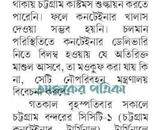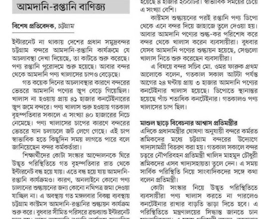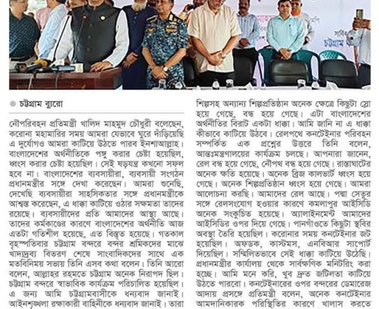 সংগ্রাম, ২৬ জুলাই ২০২৪, পুরোদমে চালু হয়নি বন্দর-কাস্টম'স চট্টগ্রাম থেকে ছাড়েনি কোনো ট্রেন