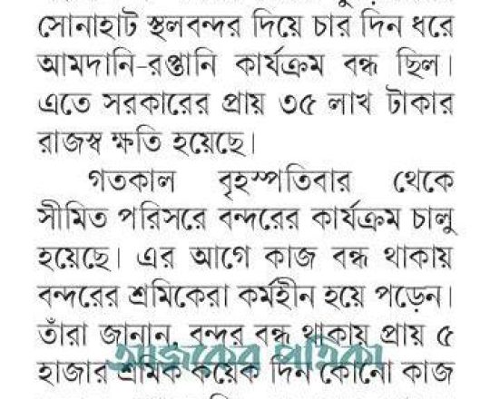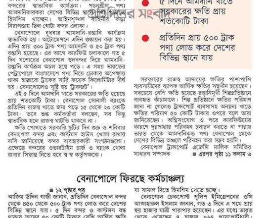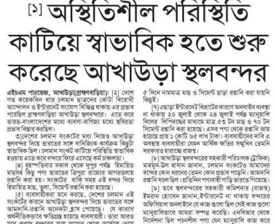 আজকালের খবর, ২৬ জুলাই ২০২৪, চলমান কারফিউতে স্থবির আখাউড়া স্থলবন্দর, রপ্তানি আয়ে ভাটা