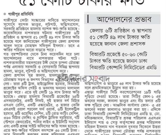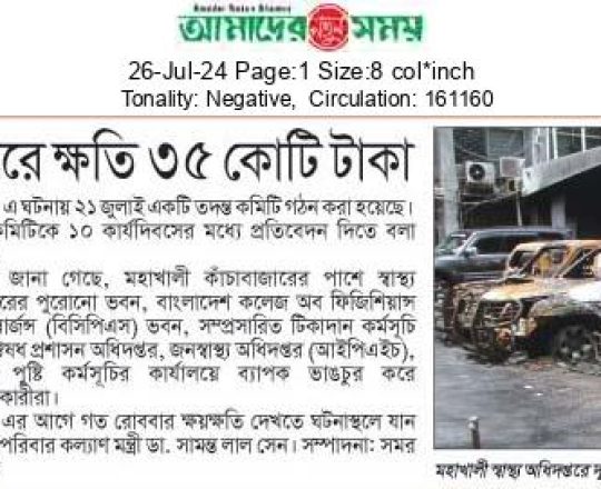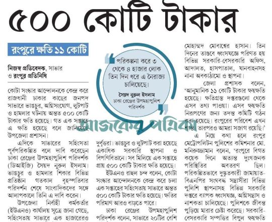 আজকের পত্রিকা, ২৬ জুলাই ২০২৪, রাজস্ব ক্ষতি ৩৫ লাখ টাকা
