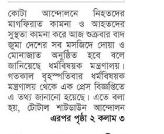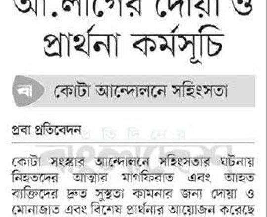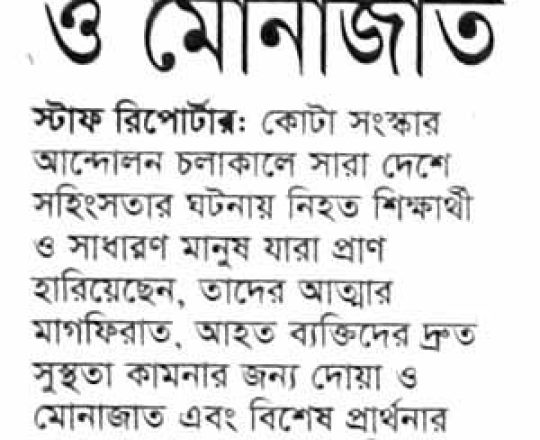 আলোকিত বাংলাদেশ, ২৬ জুলাই ২০২৪, আজ দেশের সব মসজিদে বিশেষ দোয়া-মোনাজাত