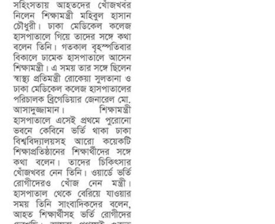 আলোকিত বাংলাদেশ, ২৬ জুলাই ২০২৪, সহিংসতায় আহতদের খোঁজখবর নিলেন শিক্ষামন্ত্রী