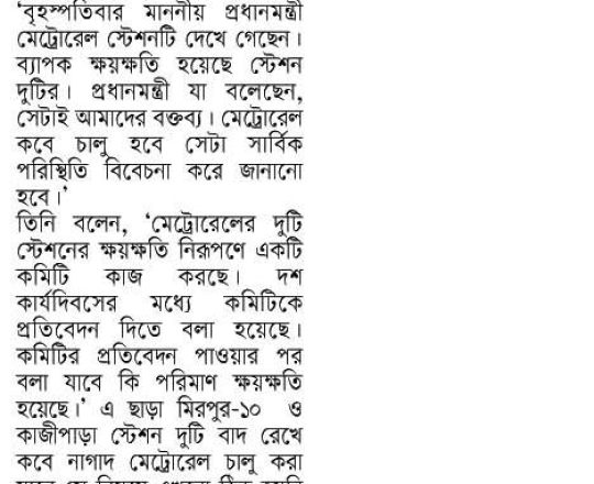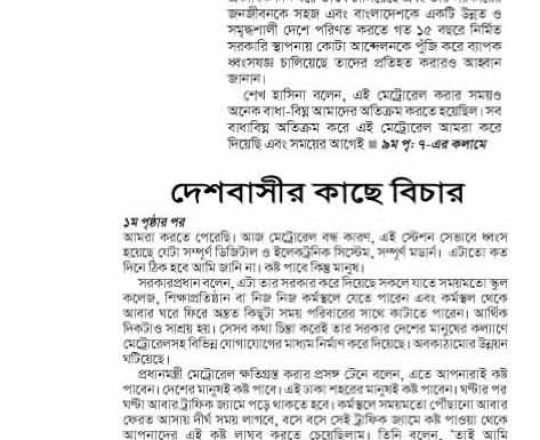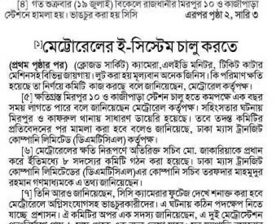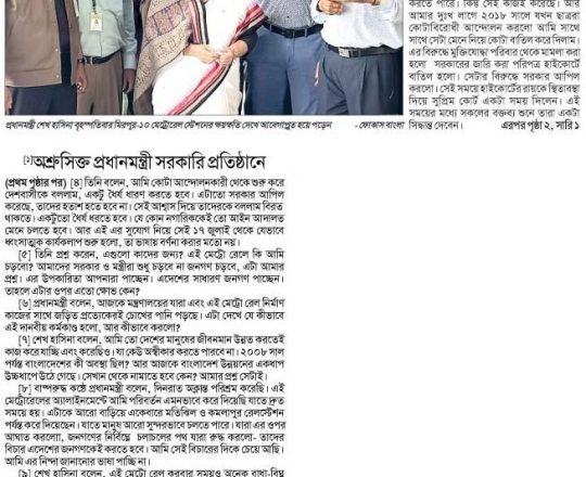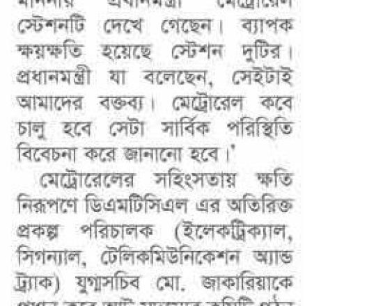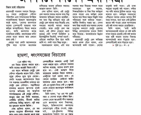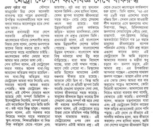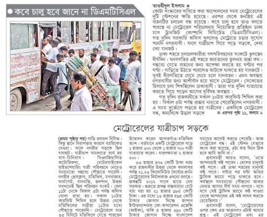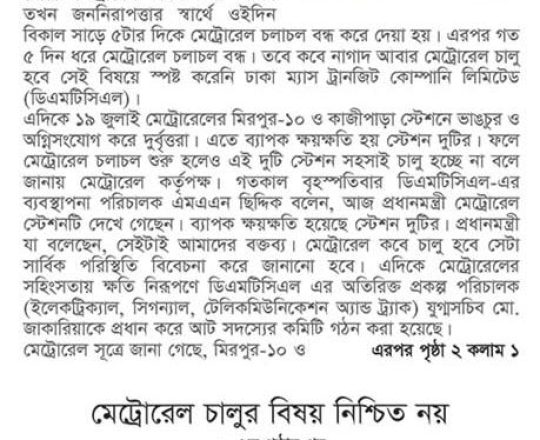 সময়ের আলো, ২৬ জুলাই ২০২৪, আপাতত চালু হচ্ছে না মেট্রোরেল