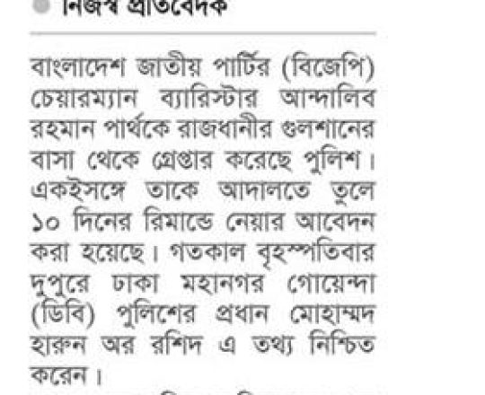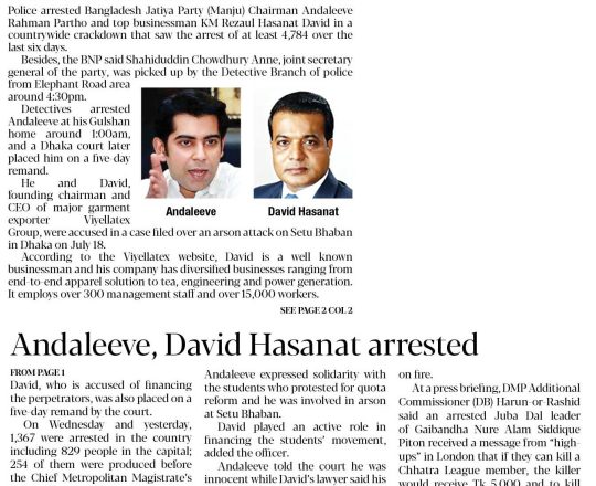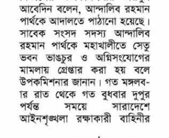 আলোকিত বাংলাদেশ, ২৬ জুলাই ২০২৪, আন্দালিব রহমান পার্থ গ্রেপ্তার