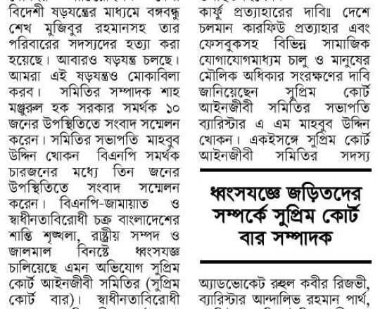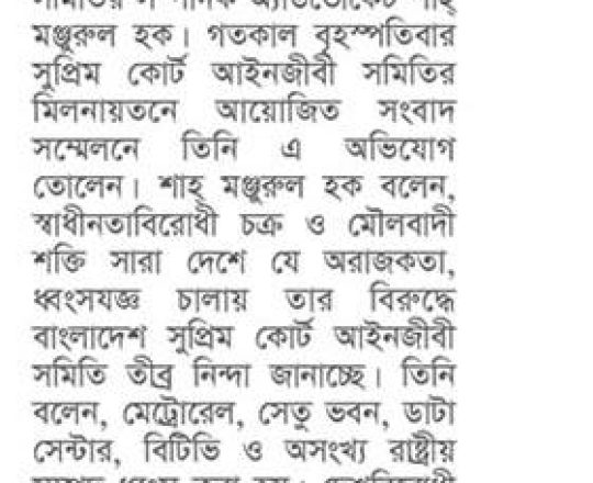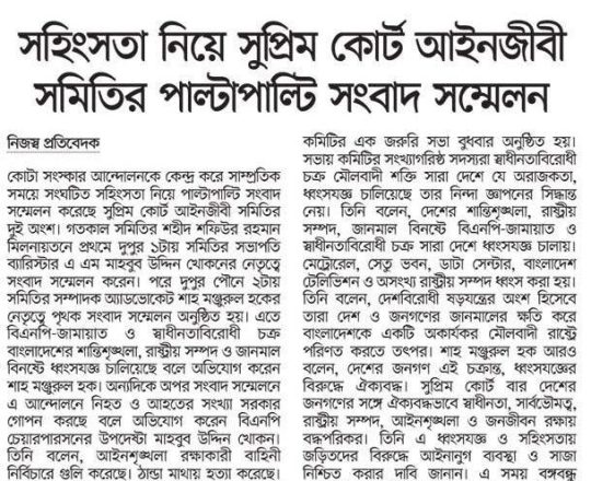 আলোকিত বাংলাদেশ, ২৬ জুলাই ২০২৪, সারা দেশে ধ্বংসযজ্ঞ চালিয়েছে বিএনপি জামায়াত সুপ্রিম কোর্ট বার