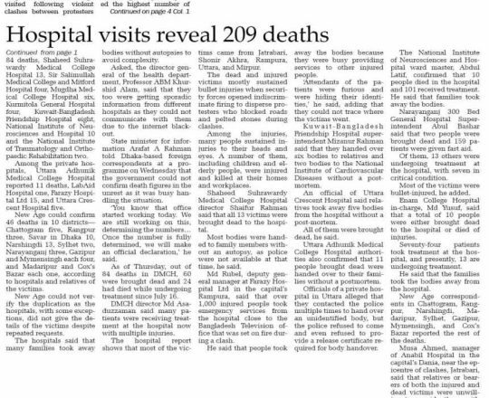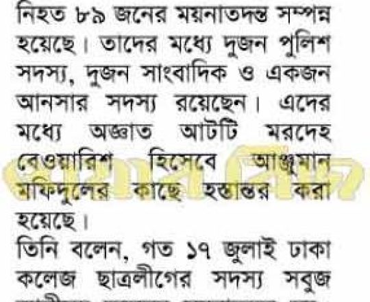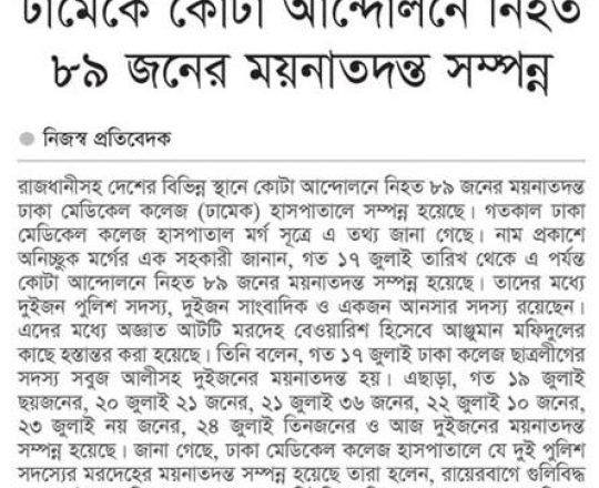 আলোকিত বাংলাদেশ, ২৬ জুলাই ২০২৪, ঢামেকে কোটা আন্দোলনে নিহত ৮৯ জনের ময়নাতদন্ত সম্পন্ন