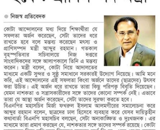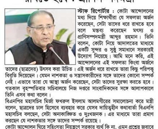 আলোকিত বাংলাদেশ, ২৬ জুলাই ২০২৪, আন্দোলনের সফলতা শিক্ষার্থীদের ধরে রাখতে হবে : প্রাণিসম্পদ মন্ত্রী