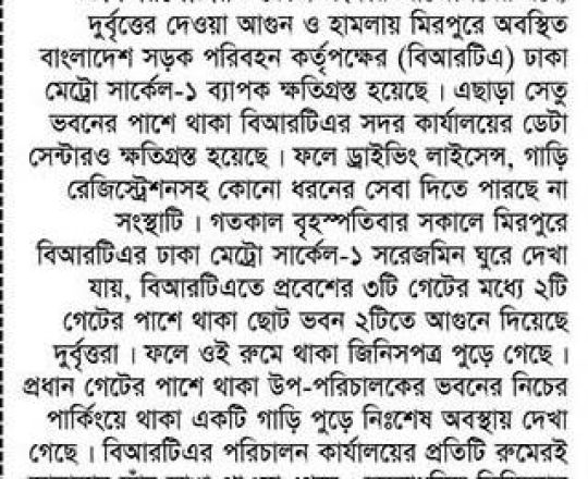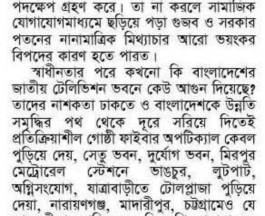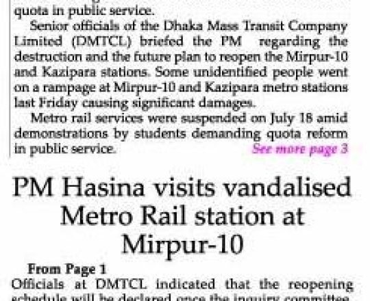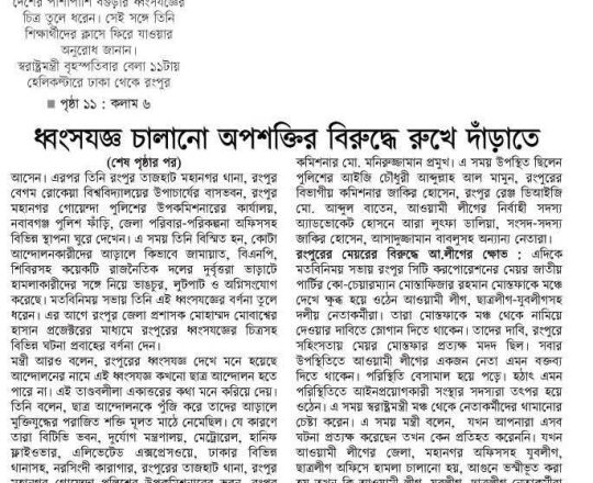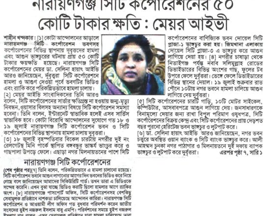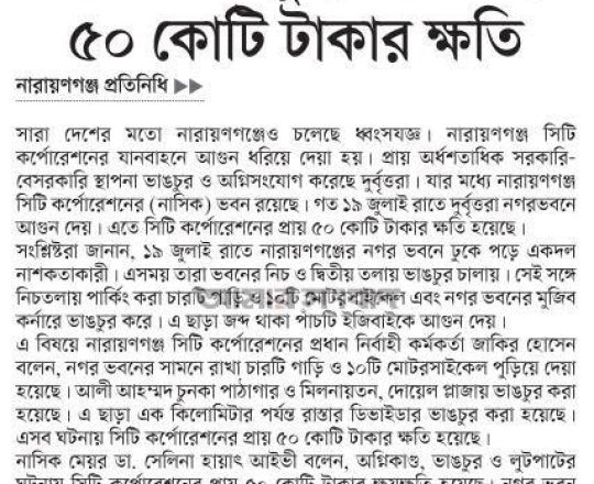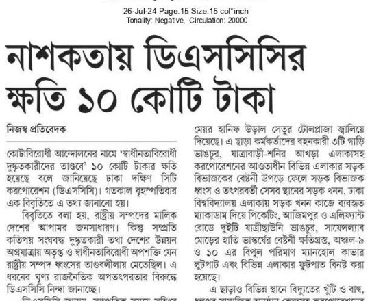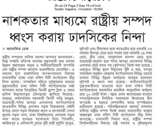 আলোকিত বাংলাদেশ, ২৬ জুলাই ২০২৪, নাশকতার মাধ্যমে রাষ্ট্রীয় সম্পদ ধ্বংস করায় ঢাদসিকের নিন্দা