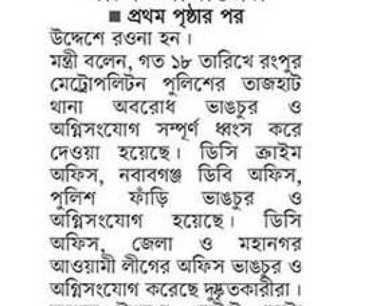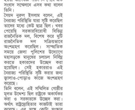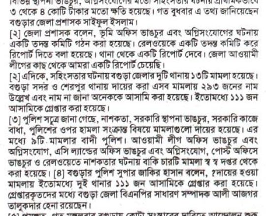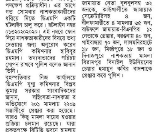 আজকালের খবর, ২৬ জুলাই ২০২৪, পঞ্চগড়ে নাশকতার তিন মামলায় গ্রেপ্তার ২৯