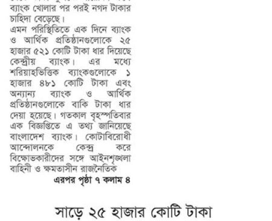 আজকালের খবর, ২৬ জুলাই ২০২৪, সাড়ে ২৫ হাজার কোটি টাকা ধার নিলো বাণিজ্যিক ব্যাংকগুলো