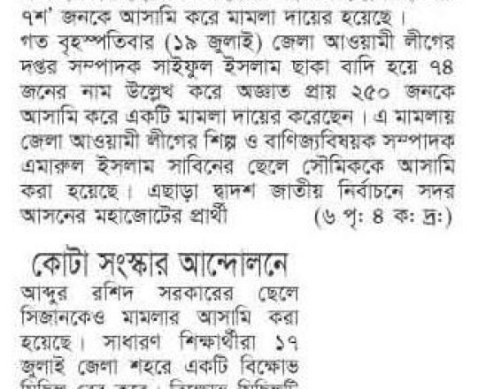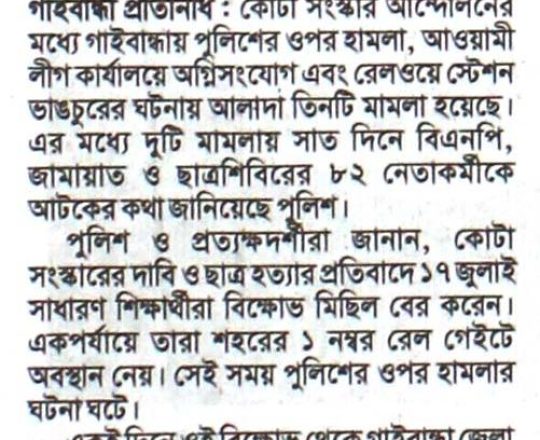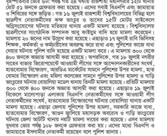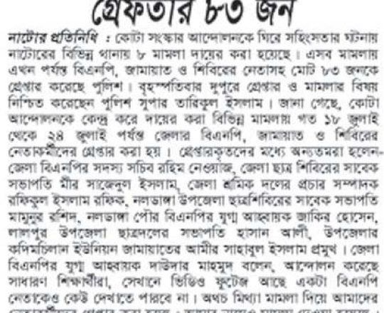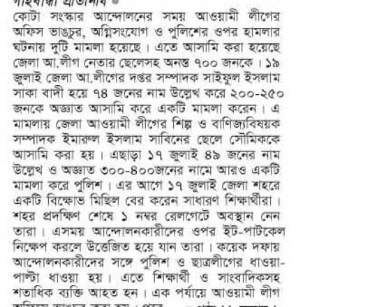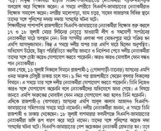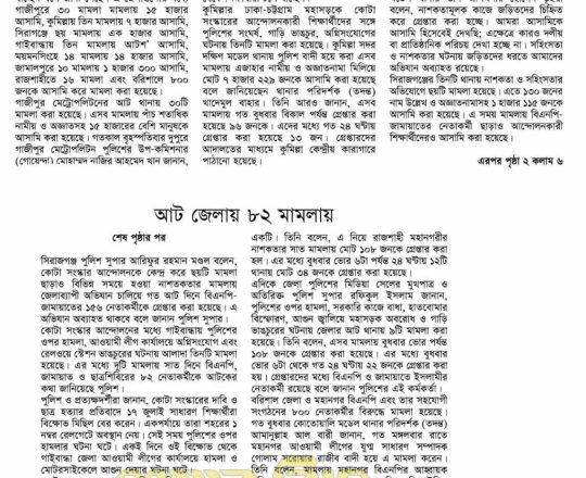 সংগ্রাম, ২৬ জুলাই ২০২৪, রাজশাহীতে ১৬টি মামলা দায়ের গ্রেফতার আড়াই শতাধিক