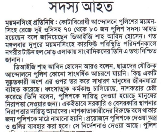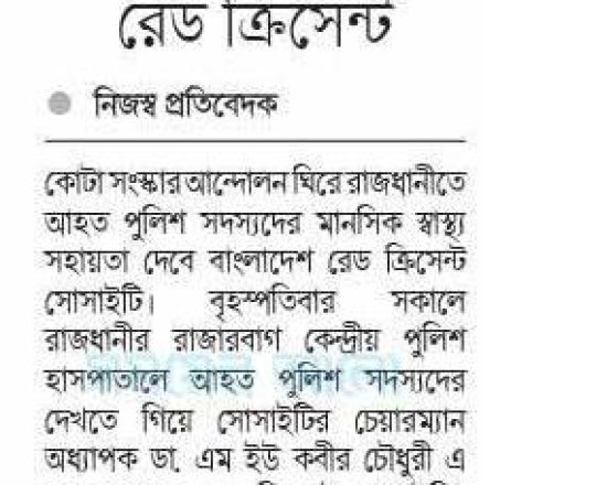সময়ের আলো, ২৬ জুলাই ২০২৪, আন্দোলনে সহিংসতা আহত পুলিশ সদস্যদের স্বাস্থ্য সহায়তা দেবে রেড ক্রিসেন্ট