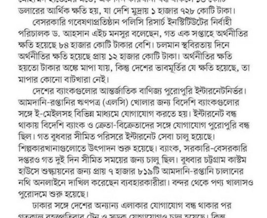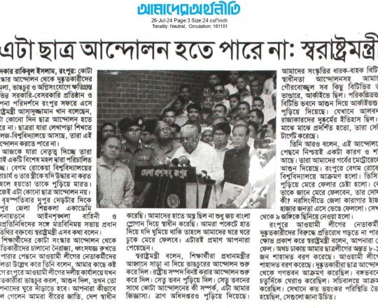আলোকিত বাংলাদেশ, ২৬ জুলাই ২০২৪, বাংলাদেশের অর্থনীতিকে পঙ্গু করার চেষ্টা সফল হবে না