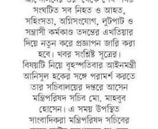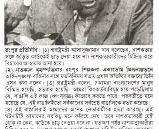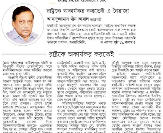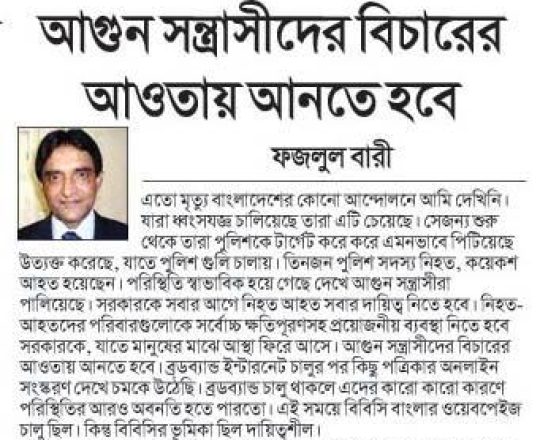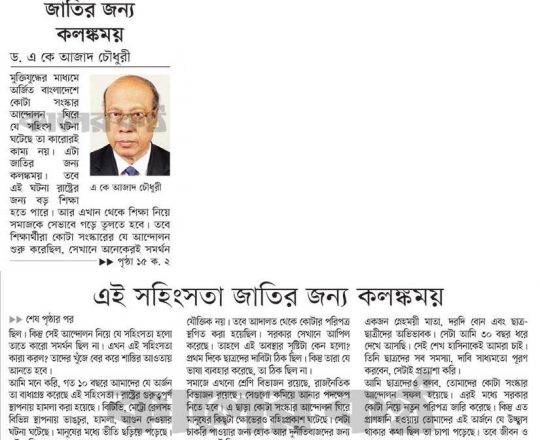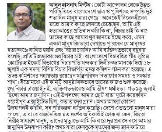 সংগ্রাম, ২৬ জুলাই ২০২৪, সহিংসতায় জড়িতদের বিরুদ্ধে আইনানুগ ব্যবস্থা ও সাজা নিশ্চিত করতে হবে -শাহ মঞ্জুরুল হক