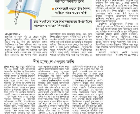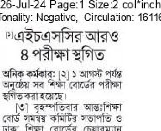 আজকালের খবর, ২৬ জুলাই ২০২৪, ১ আগস্ট পর্যন্ত এইচএসসি ও সমমান পরীক্ষা স্থগিত