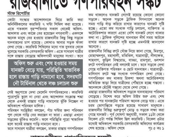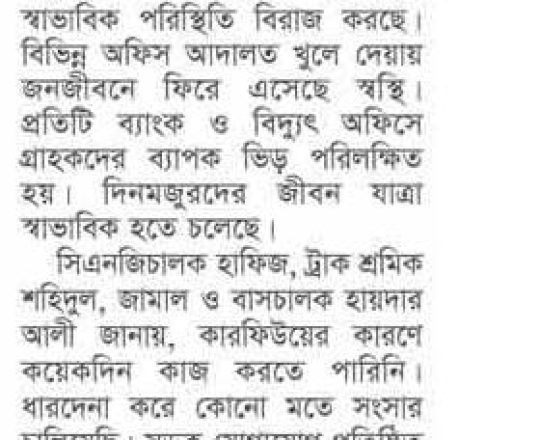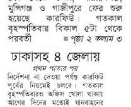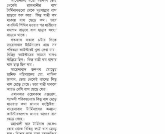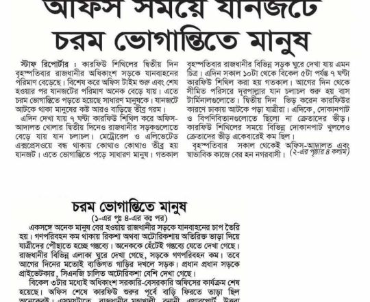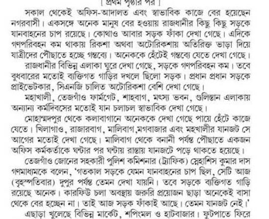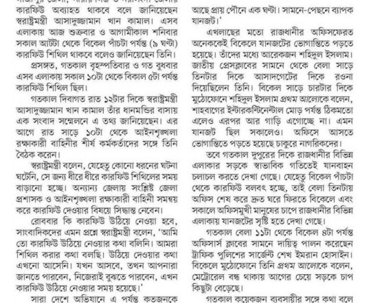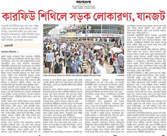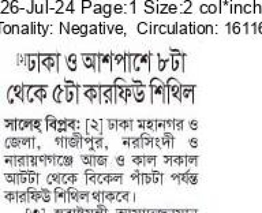 সংগ্রাম, ২৬ জুলাই ২০২৪, দিনে ১০টা-৫টা কারফিউ শিথিল বলবৎ অনির্দিষ্টকাল