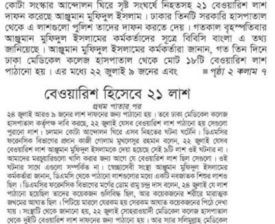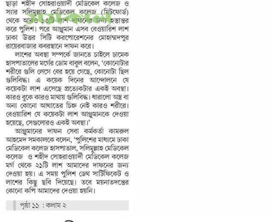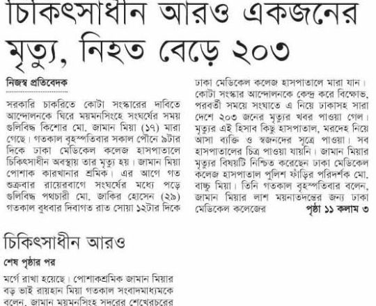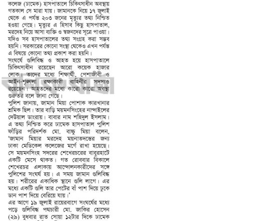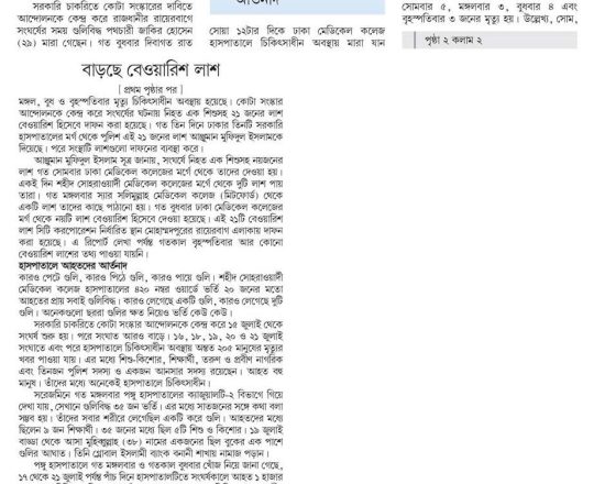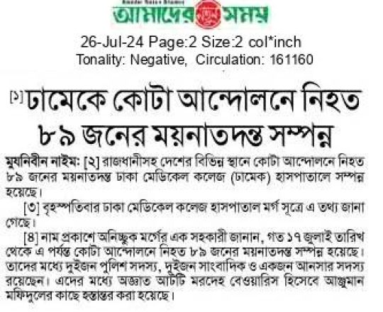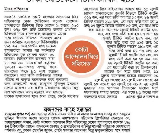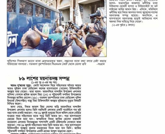 সংগ্রাম, ২৬ জুলাই ২০২৪, ঢামেকে আরও দু'জনের মৃত্যু ৮৯ লাশের ময়নাতদন্ত সম্পন্ন