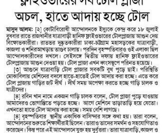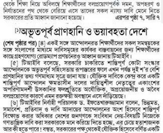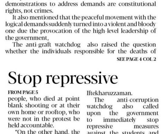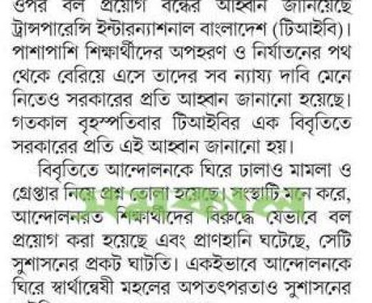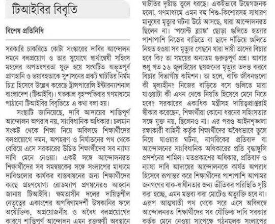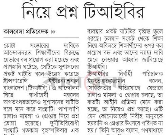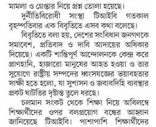 সংগ্রাম, ২৬ জুলাই ২০২৪, অভূতপূর্ব প্রাণহানি ও ভয়াবহতা সুশাসনের প্রকট ঘাটতির নির্মম চিত্র-টিআইবি