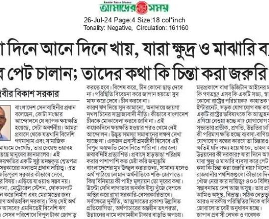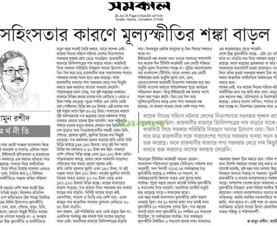 আজকালের খবর, ২৬ জুলাই ২০২৪, মূল্যস্ফীতি নিয়ন্ত্রণে এলে স্বস্তি ফিরবে পুরোপুরি