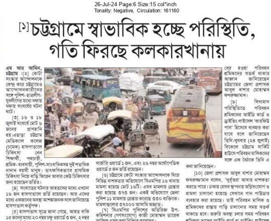 আজকের পত্রিকা, ২৬ জুলাই ২০২৪, পরিস্থিতি শিগগির স্বাভাবিক হবে