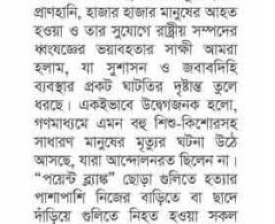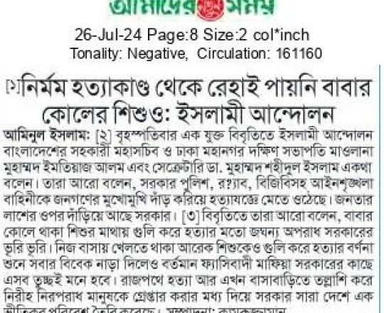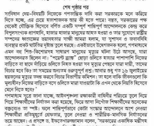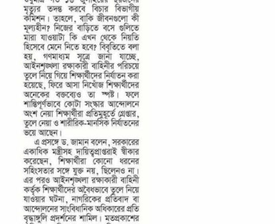আজকের পত্রিকা, ২৬ জুলাই ২০২৪, অবিলম্বে দমন-পীড়ন বন্ধের আহ্বান