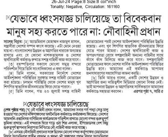 আজকের পত্রিকা, ২৬ জুলাই ২০২৪, অপতৎপরতা রোধে সশস্ত্র বাহিনী কাজ করে যাবে