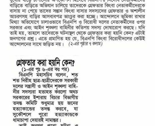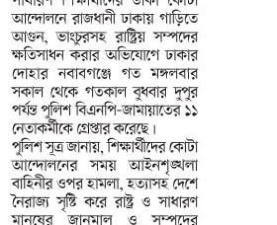 সংগ্রাম, ২৬ জুলাই ২০২৪, কোটা সংস্কার আন্দোলনে জড়িত থাকলে ঘটনাস্থল থেকে গ্রেফতার করা হয়নি কেন?