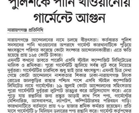 আলোকিত বাংলাদেশ, ২৬ জুলাই ২০২৪, চট্টগ্রামে খুলেছে পোশাক কারখানা