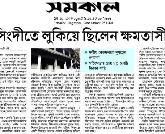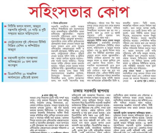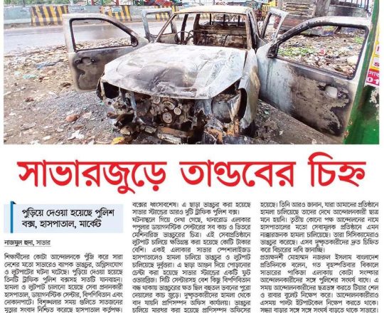 আজকের পত্রিকা, ২৬ জুলাই ২০২৪, সাভারে তাণ্ডবে ক্ষতি ৫০০ কোটি টাকার