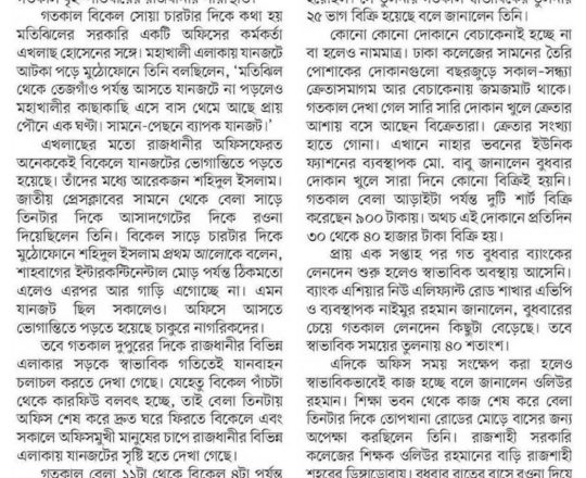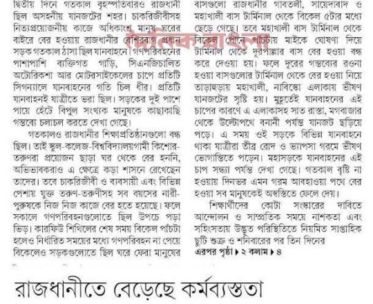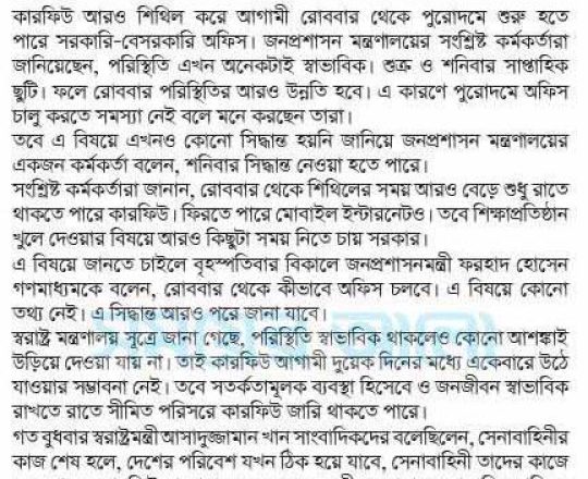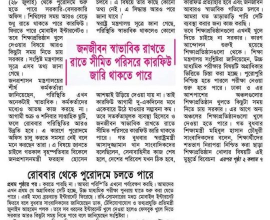 সময়ের আলো, ২৬ জুলাই ২০২৪, রোববার থেকে পুরোদমে অফিস চলতে পারে