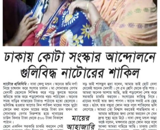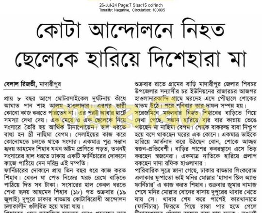 শেয়ার বিজ, ২৬ জুলাই ২০২৪, কোটা আন্দোলনে নিহত ছেলেকে হারিয়ে দিশেহারা মা