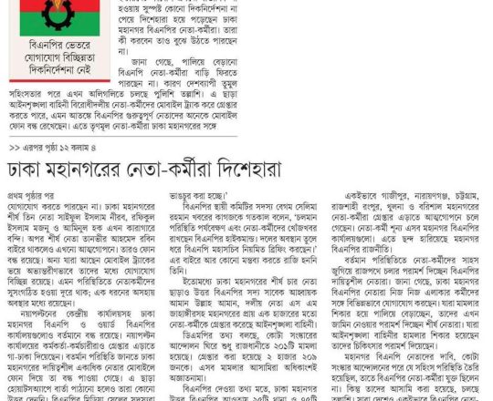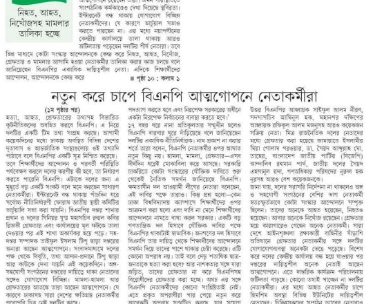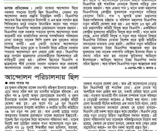 আজকালের খবর, ২৬ জুলাই ২০২৪, ভুল সিদ্ধান্তে ফের সঙ্কটে বিএনপি: বেশিরভাগ নেতাকর্মী আত্মগোপনে