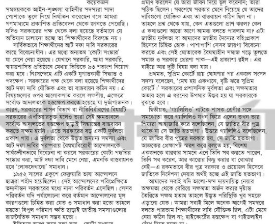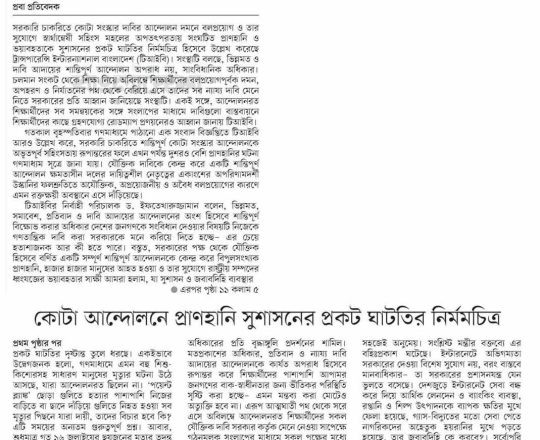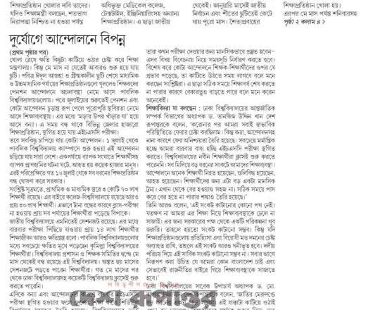 সংগ্রাম, ২৬ জুলাই ২০২৪, কারফিউ তুলে শিক্ষা প্রতিষ্ঠান ও শিক্ষার্থীদের সকল যৌক্তিক দাবি মেনে নিন -আদর্শ শিক্ষক ফেডারেশন