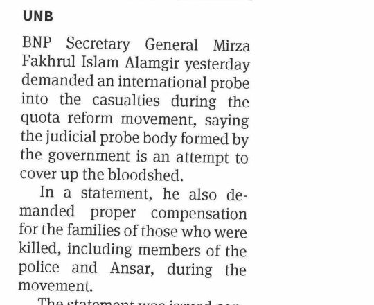 শেয়ার বিজ, ২৬ জুলাই ২০২৪, শিক্ষার্থী হত্যাকাণ্ডে আন্তর্জাতিক তদন্তের দাবি মির্জা ফখরুলের