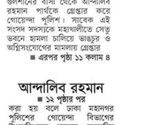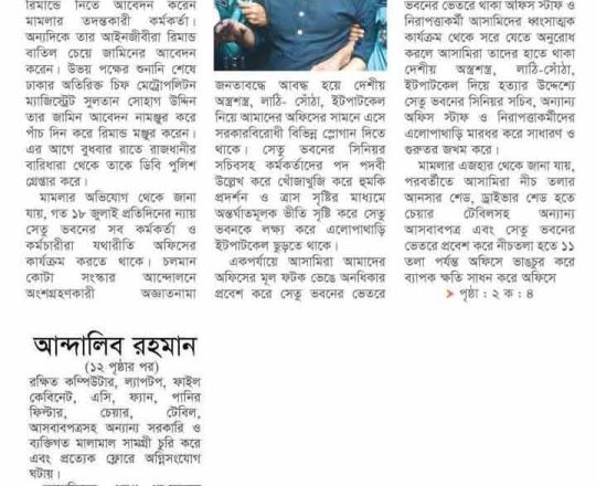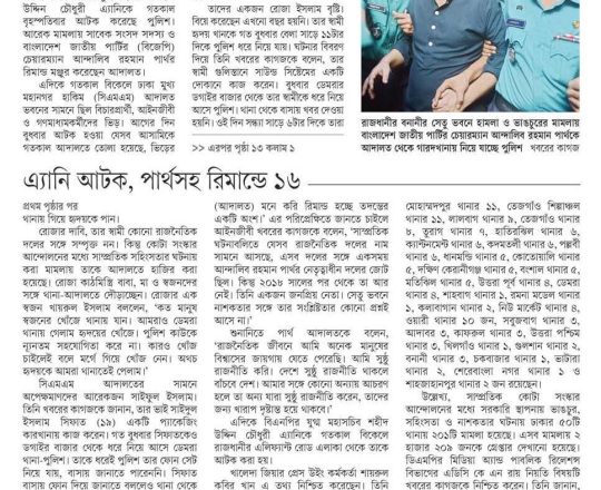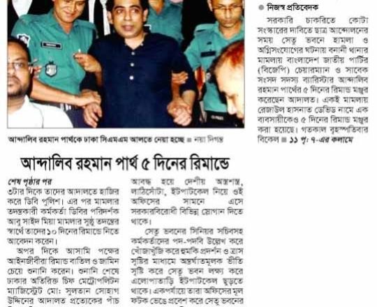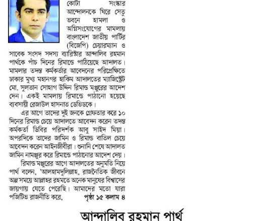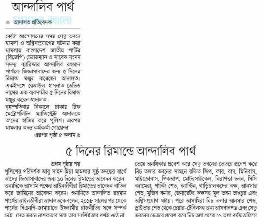 সময়ের আলো, ২৬ জুলাই ২০২৪, ৫ দিনের রিমান্ডে আন্দালিব পার্থ