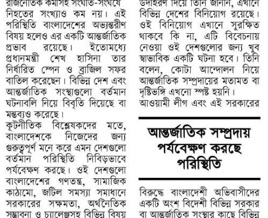 আজকের পত্রিকা, ২৬ জুলাই ২০২৪, সংকটের কয়েকটি দিক ও কিছু প্রশ্ন