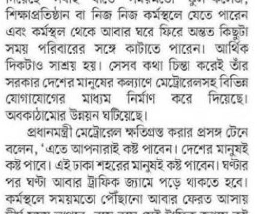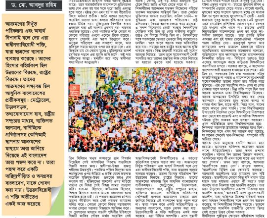 আলোকিত বাংলাদেশ, ২৬ জুলাই ২০২৪, উন্নয়ন ধ্বংসকারীদের বিরুদ্ধে দেশবাসীকে রুখে দাঁড়াতে হবে