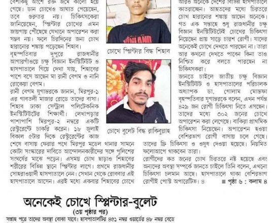 প্রথম আলো, ২৬ জুলাই ২০২৪, চোখে অস্ত্রোপচার ২৭৮ জনের, চিকিৎসা নিয়েছেন ৪২৪ জন