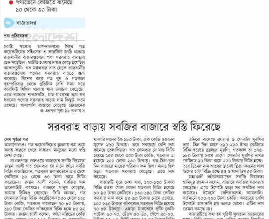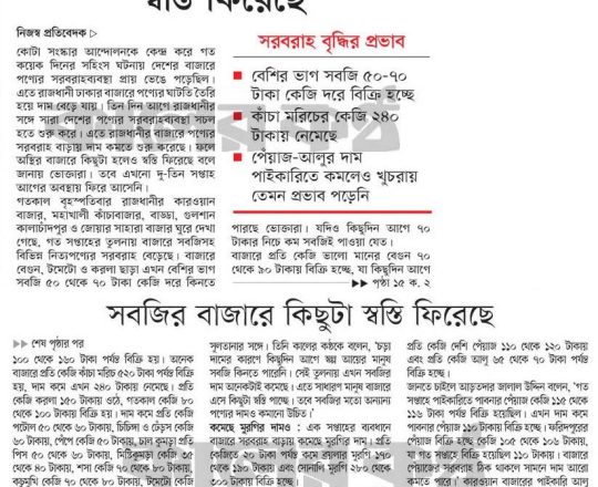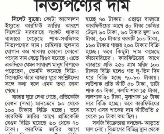 সংগ্রাম, ২৬ জুলাই ২০২৪, বেড়েছে শাক-সবজিসহ নিত্যপণ্যের দাম