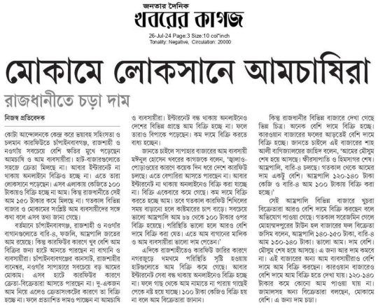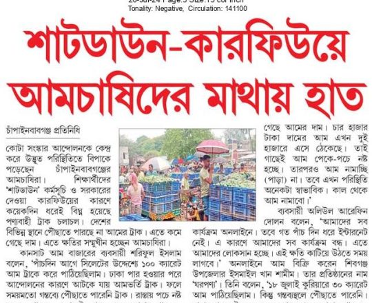 আজকালের খবর, ২৬ জুলাই ২০২৪, শাটডাউন-কারফিউয়ে ক্ষতির মুখে চাঁপাইনবাবগঞ্জের আমচাষিরা