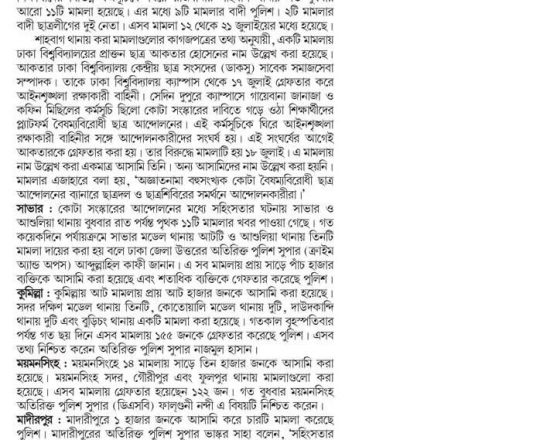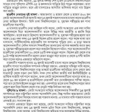 শেয়ার বিজ, ২৬ জুলাই ২০২৪, আট জেলায় ৮২ মামলায় ৫০ সহস্রাধিক আসামি