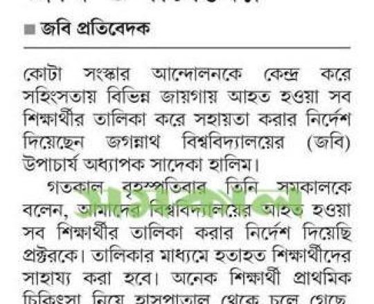 প্রথম আলো, ২৬ জুলাই ২০২৪, আবু সাঈদের পরিবারকে আর্থিক সহায়তা দিল বিশ্ববিদ্যালয় প্রশাসন