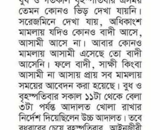 সংগ্রাম, ২৬ জুলাই ২০২৪, আদালত খুললেও স্বাভাবিক হয়নি কার্যক্রম